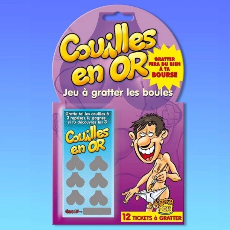 12 Tickets à gratter. Le but est de gratter les cases en formes de couilles à 3 reprises et si vous en trouvez 3 alors vous avez gagné.