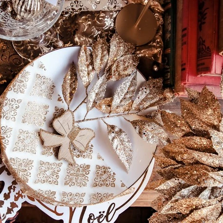 Lot de 6 jolies branches à paillette or de 24 cm.