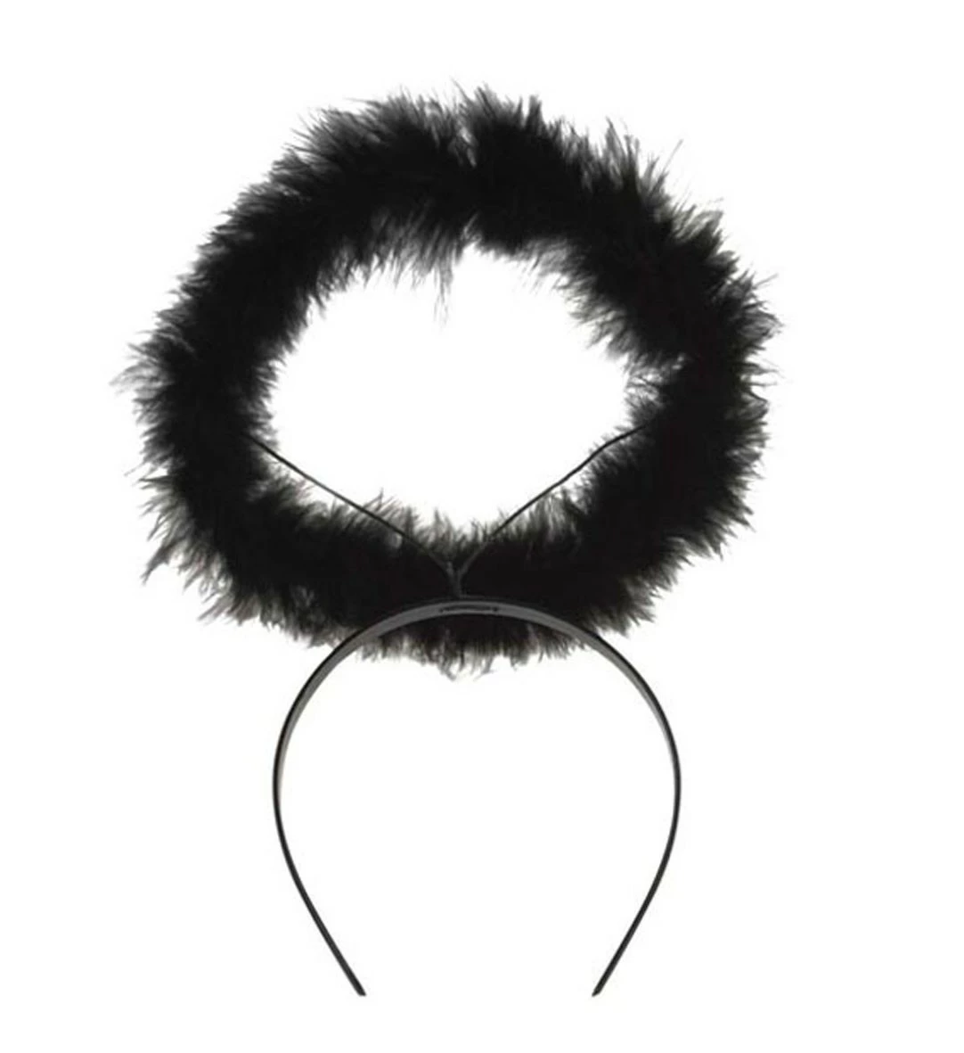 Auréole en plume Marabout de couleur blanche ou noire avec serre-tête.