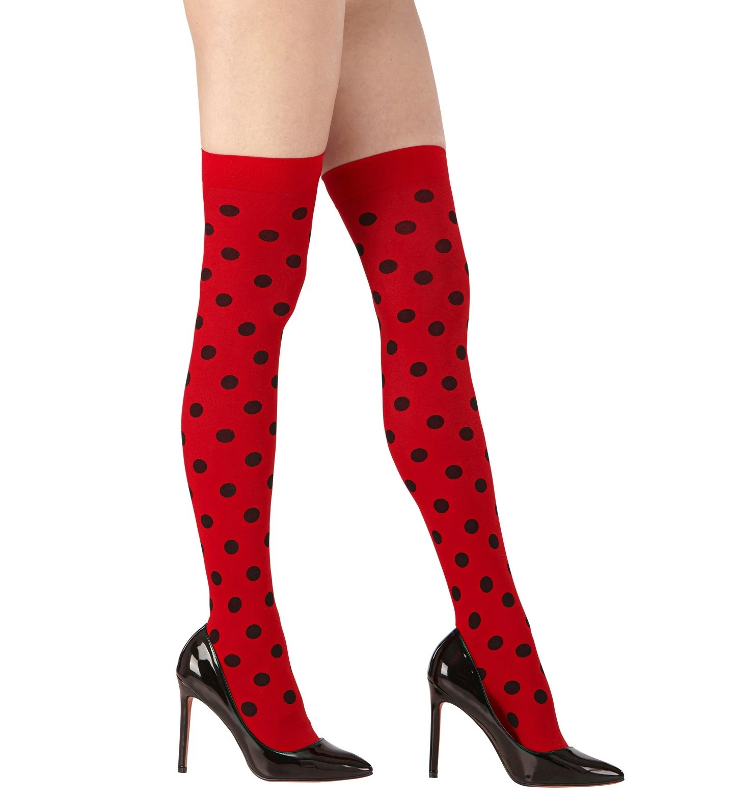 Ces bas en tissus sont rouges à poids noirs de 70 den. Taille unique.