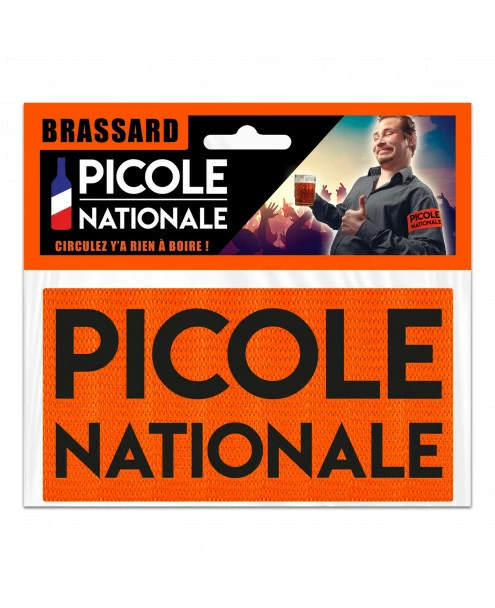 Brassard de policier orange avec inscription « picole nationale » en noir.