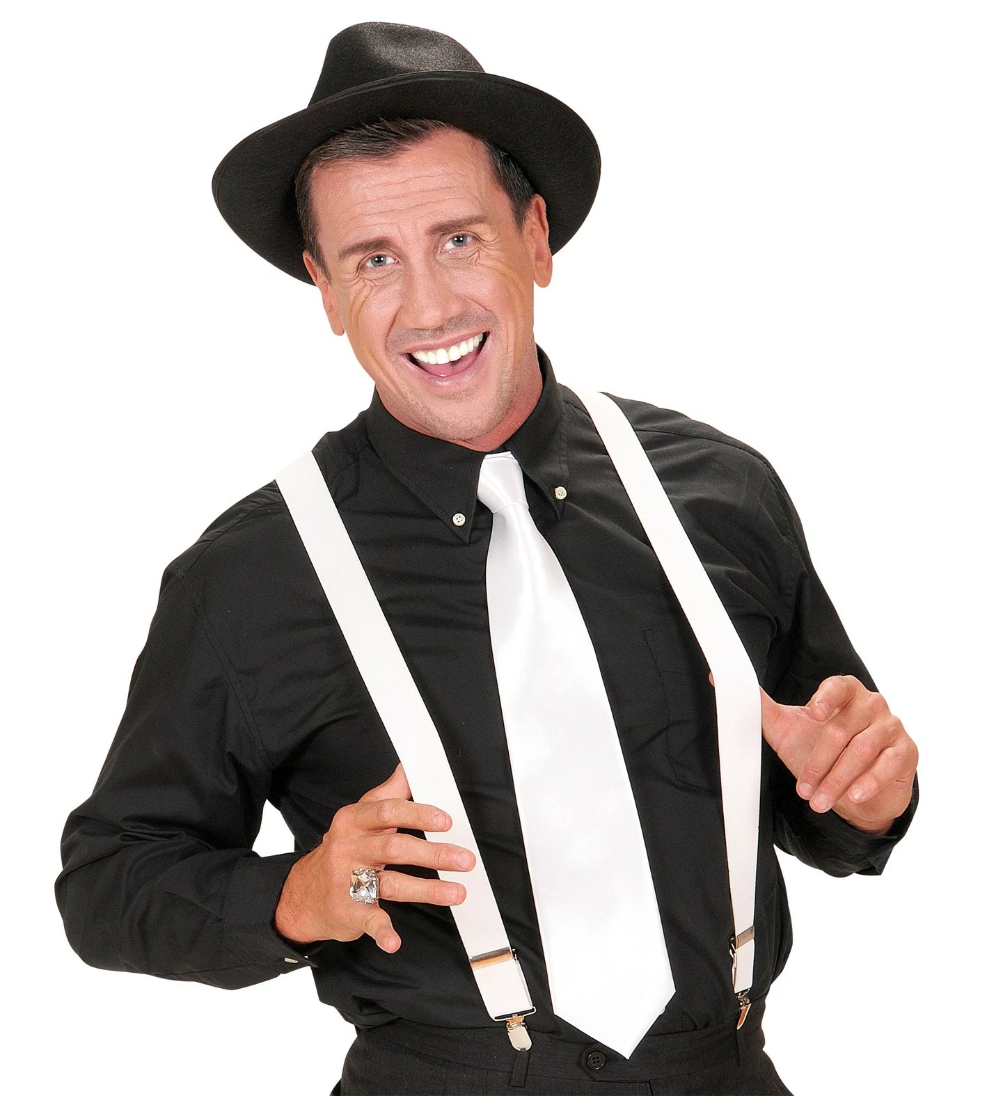 Ces bretelles en élastiques blanches noires ou rouges, complèteront à la perfection votre déguisement de gangster alors n’hésitez plus !