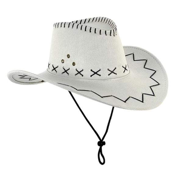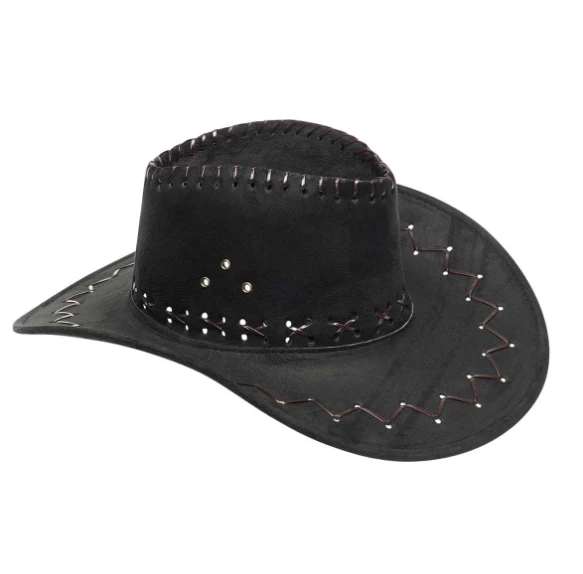 Ce chapeau de Cow-Boy en daim se décline en marron foncé, clair, noir et blanc.