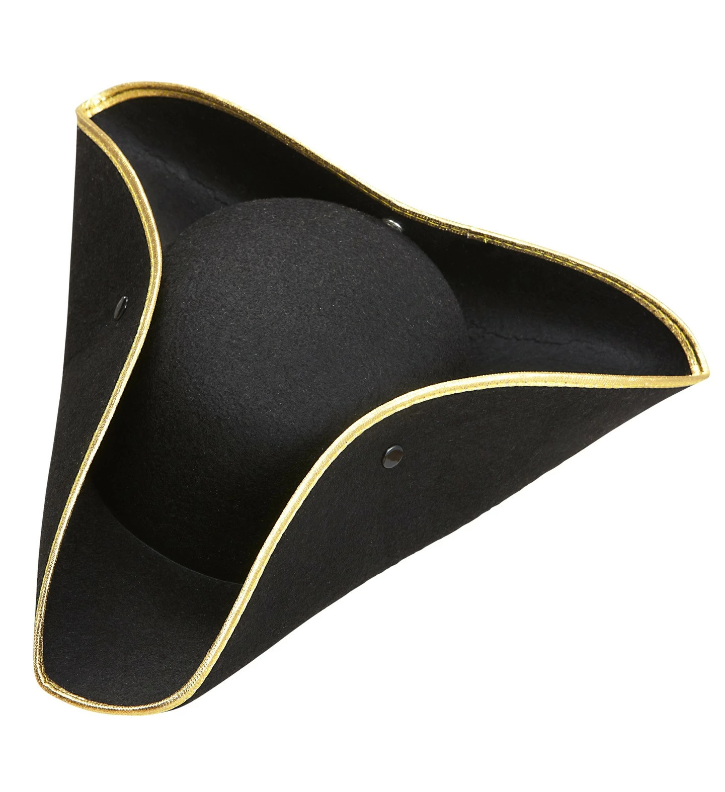 Ce chapeau de pirate est noir en feutrine avec les extrémités dorées.