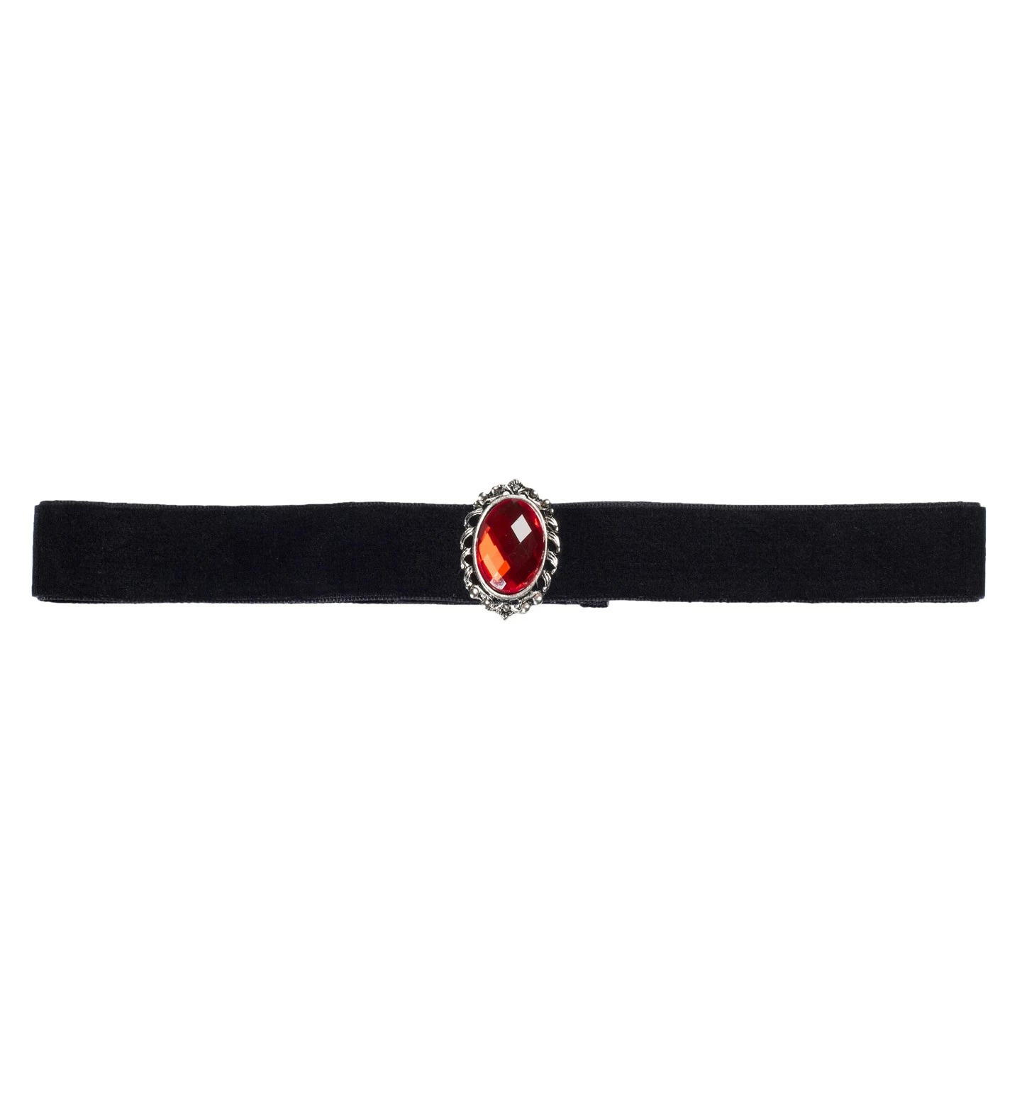 Collier en velours noir avec une perle rouge au milieu idéal pour compléter votre tenue Vampire ou le déguisement de Cruella