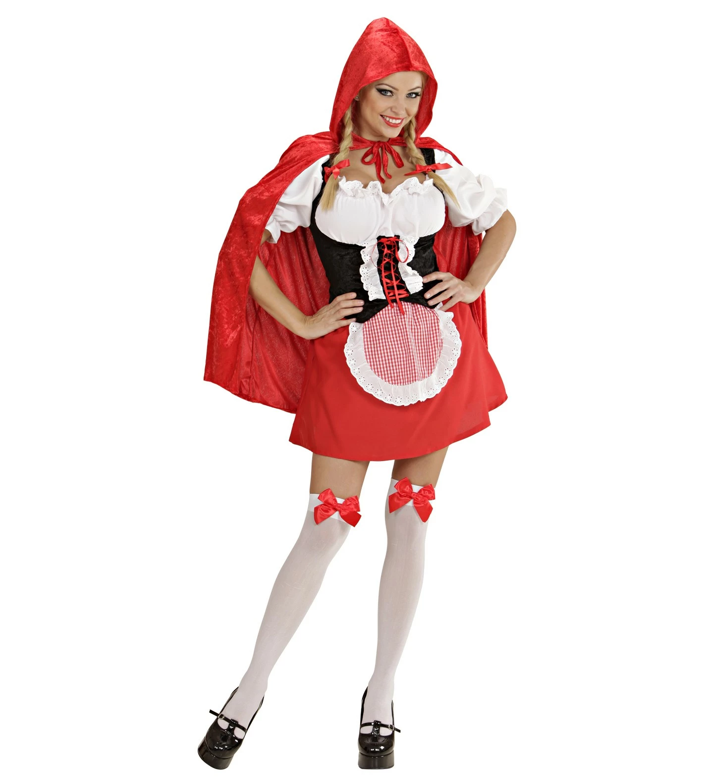 Il se compose d’une chemise avec corset sur le devant, d’une jupe avec un tablier, et de la fameuse cape rouge avec capuche (le panier, bas et chaussure non inclus).