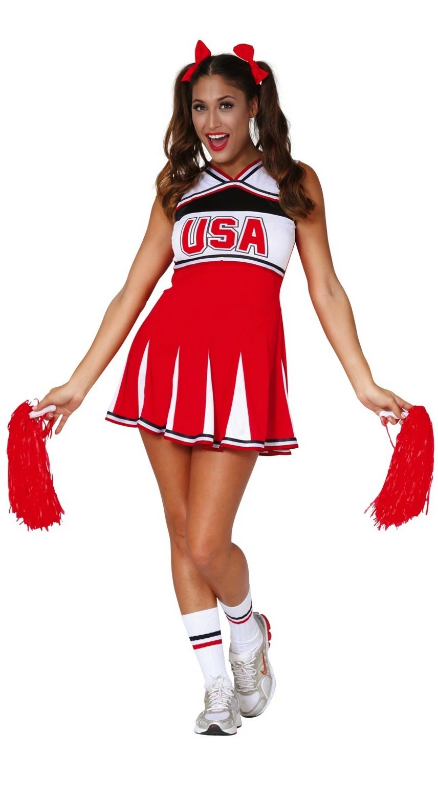 Jolie robe à manches courtes rouge et blanche avec inscription USA.