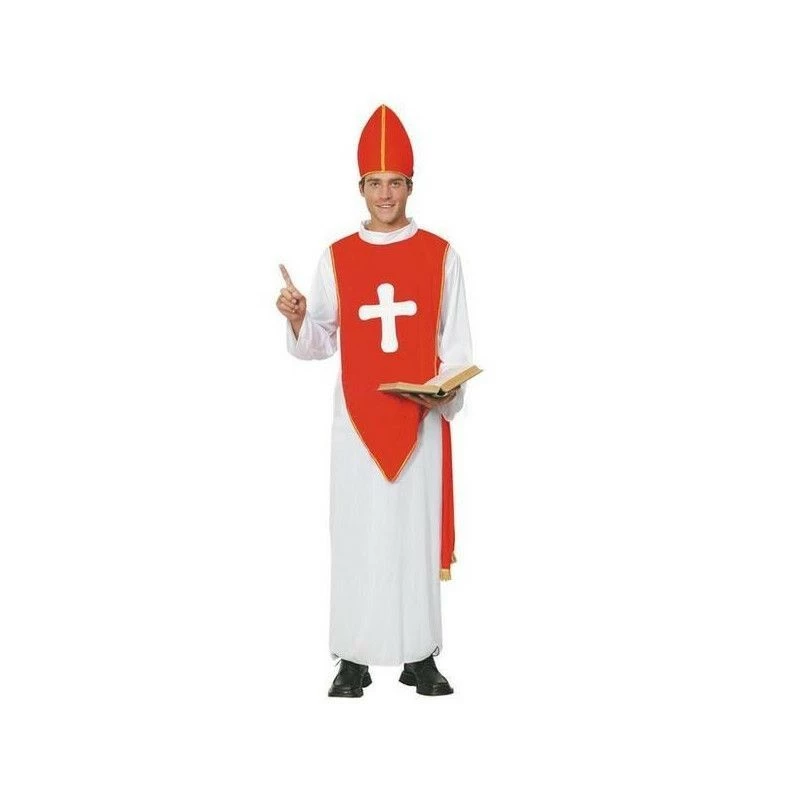 Ce costume contient un chapeau rouge avec un liseré dorés au centre, une toge blanche et une ceinture rouge avec une croix blanche au centre.