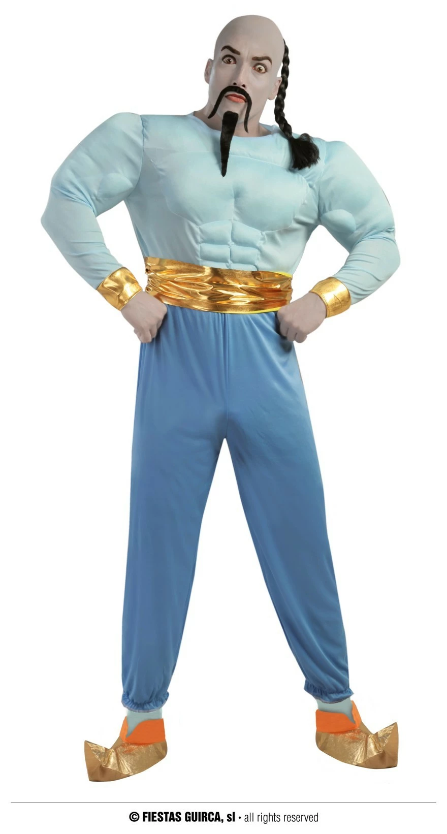 Ce déguisement de génie de la lampe se compose d’une combinaison avec ceinture (perruque, barbe, moustache et non incluses).