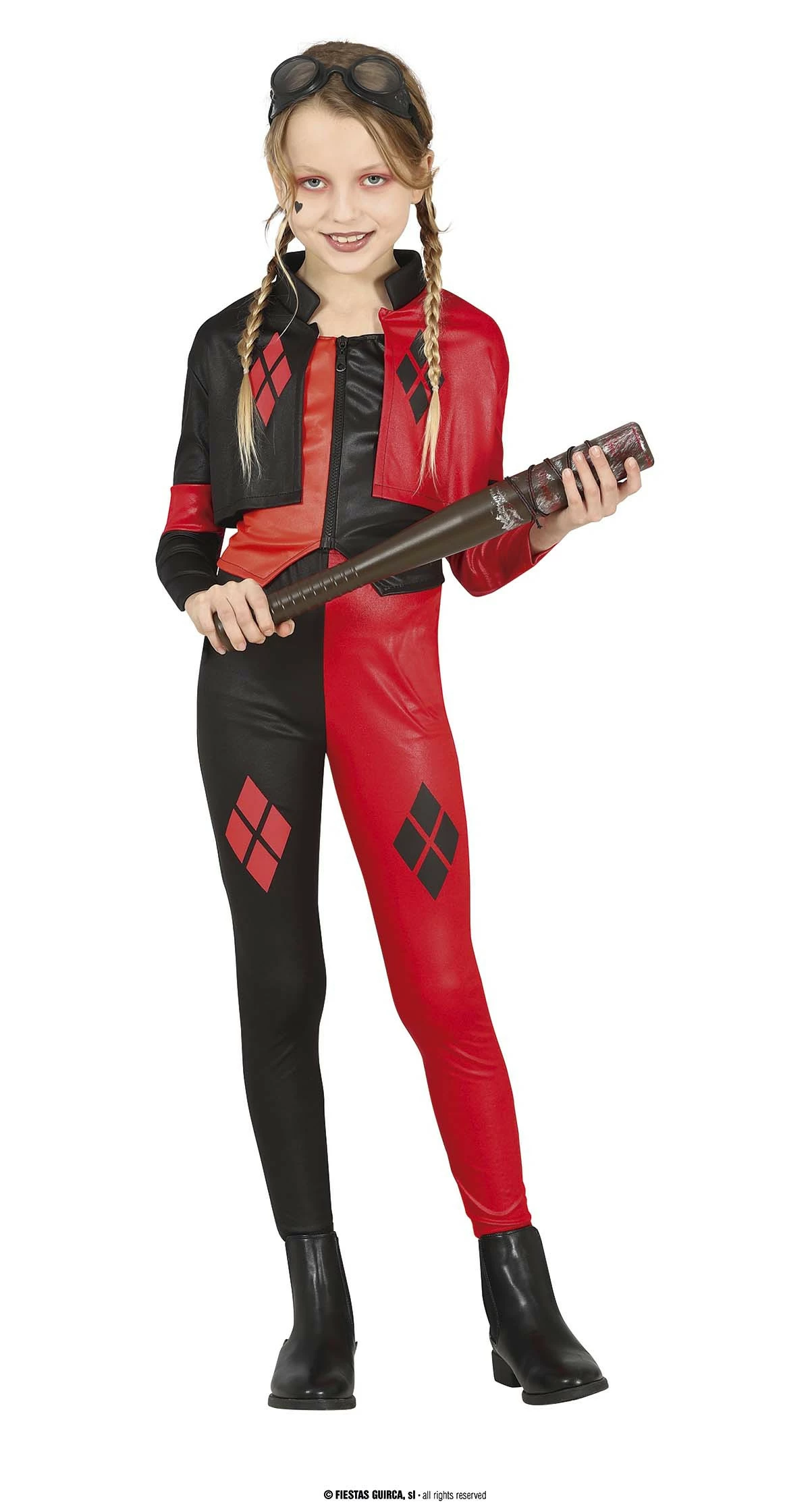 Déguisement pour petite fille rouge et noir composé d’un tee-shirt, d’une veste et d’un pantalon.