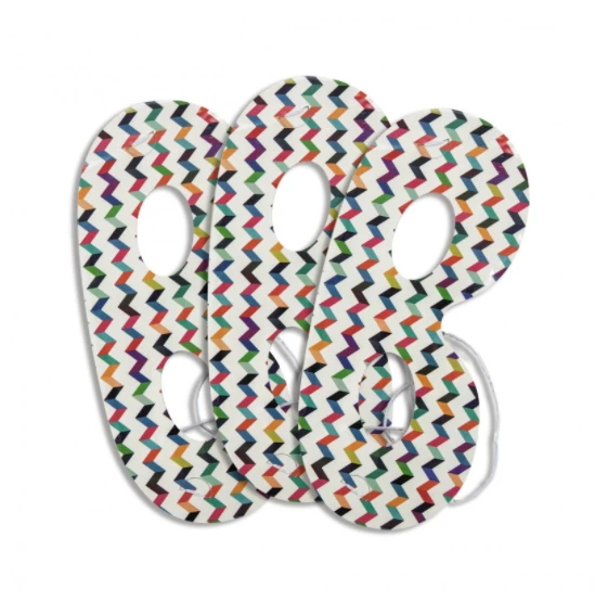 Ce lot contient 8 masques blancs décorés de rayures multicolores.