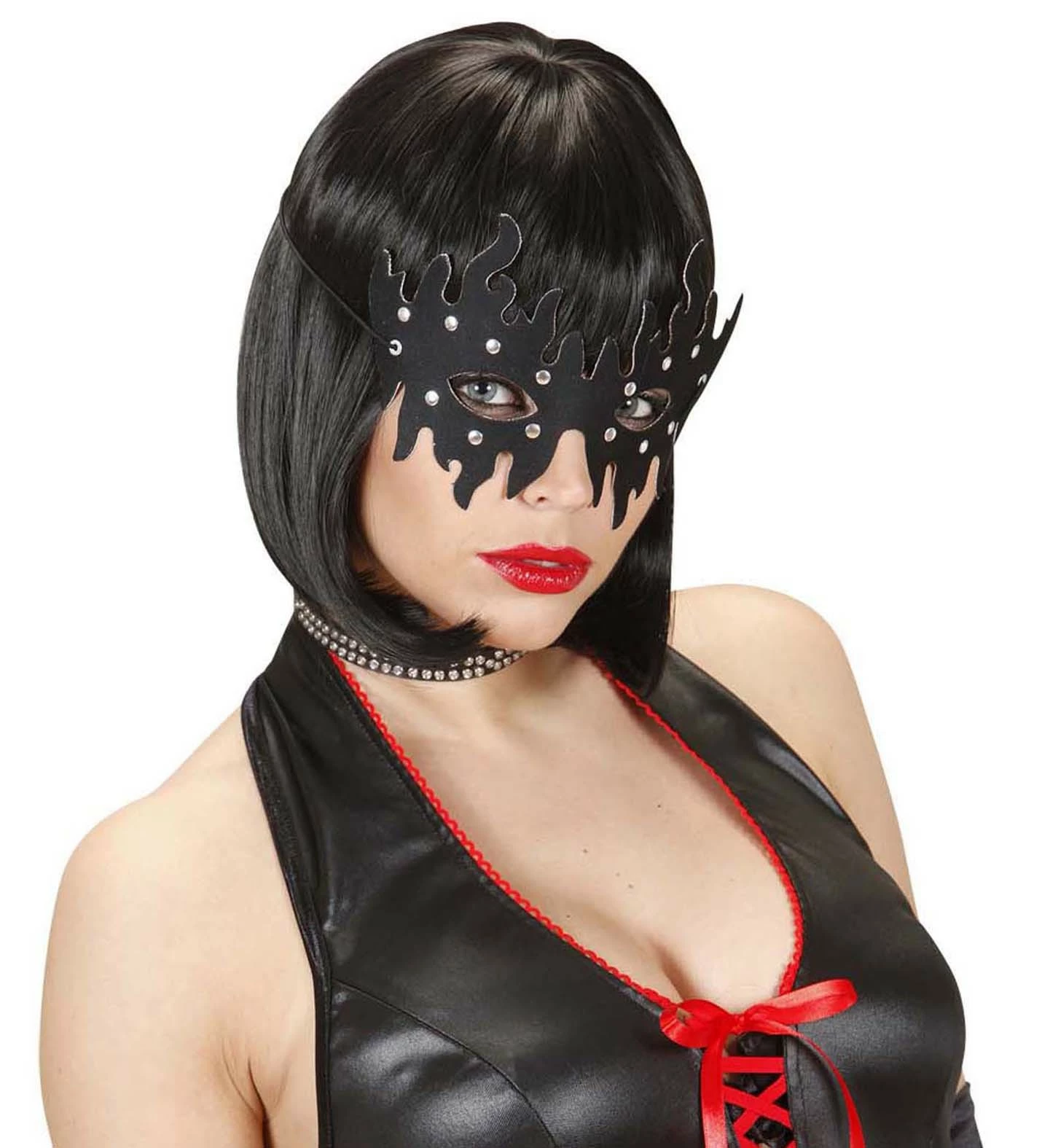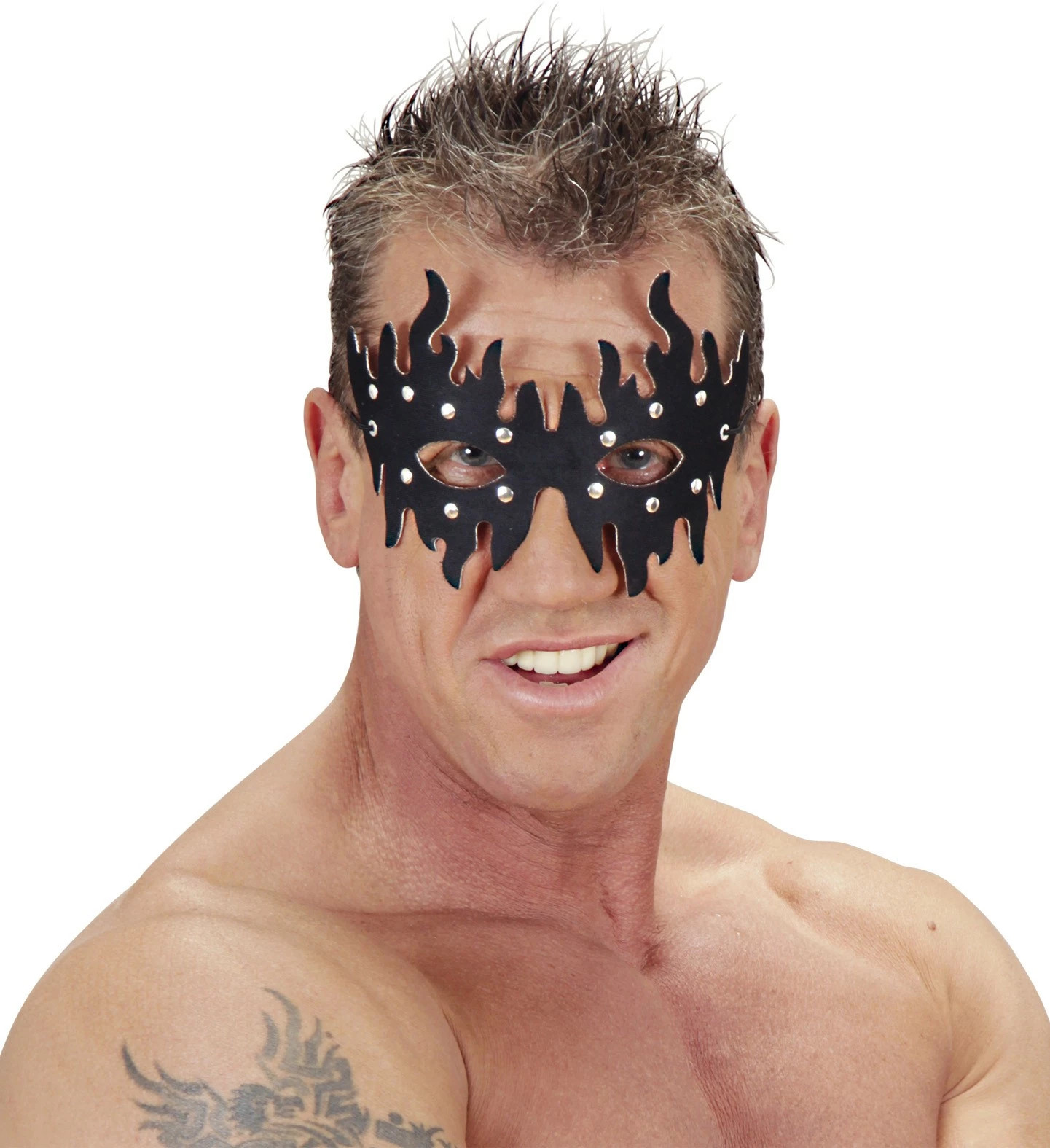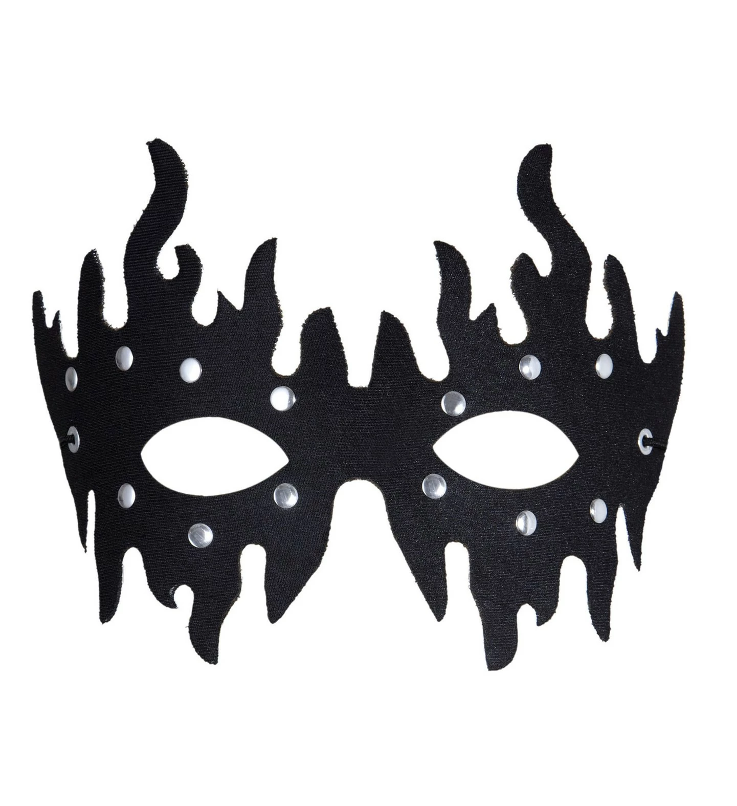 Ce loup noir en forme de flammes est décoré de clous argentés.