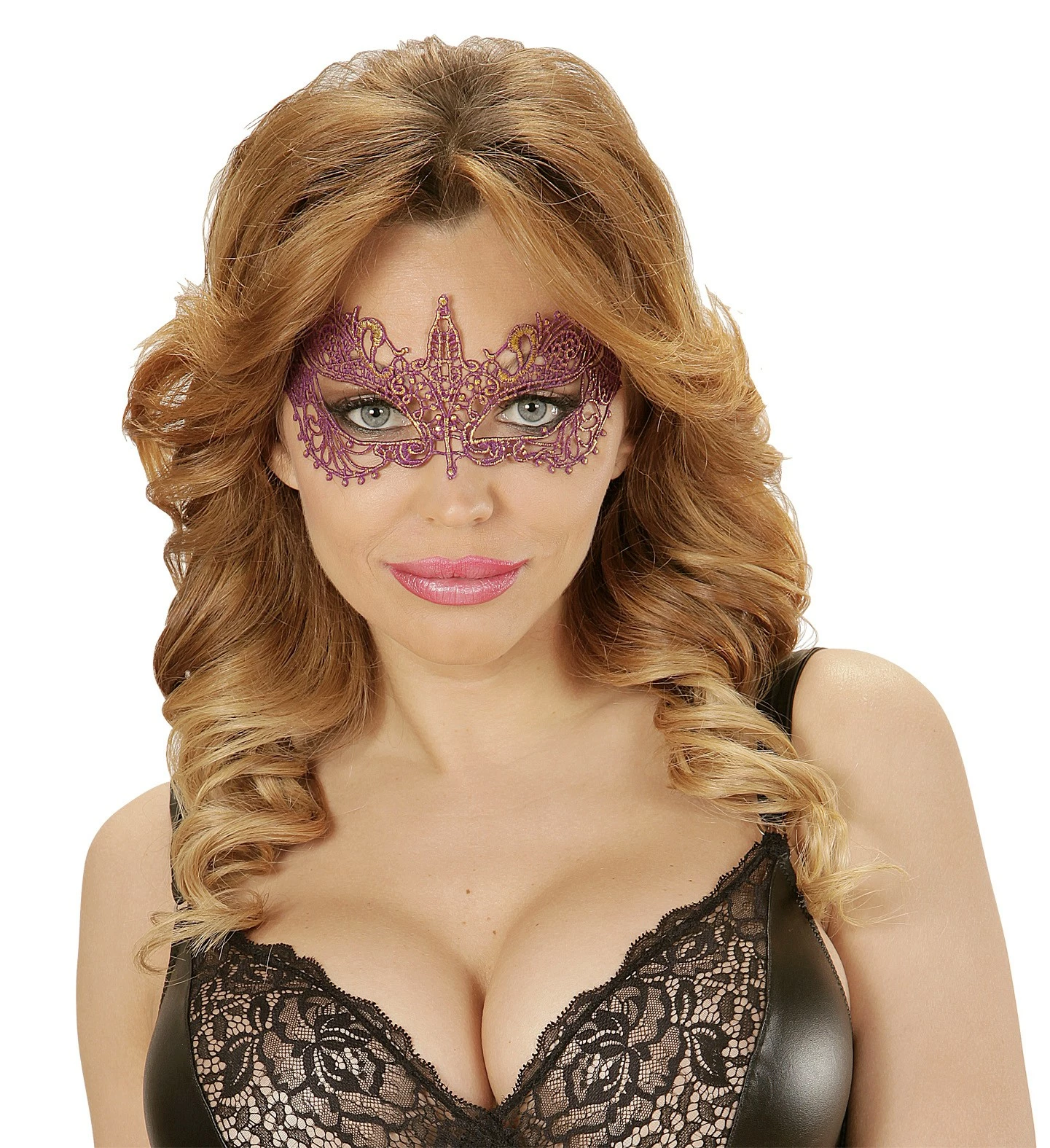 Masque en dentelle violette.