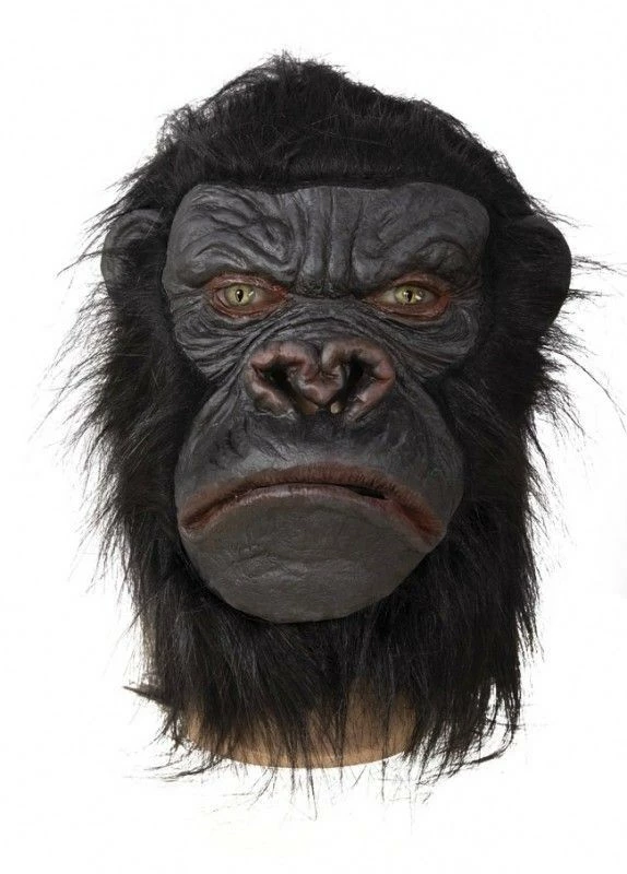 Masque intégral de singe avec poils synthétiques, une ouverture au niveau de la bouche, des yeux et des oreilles.