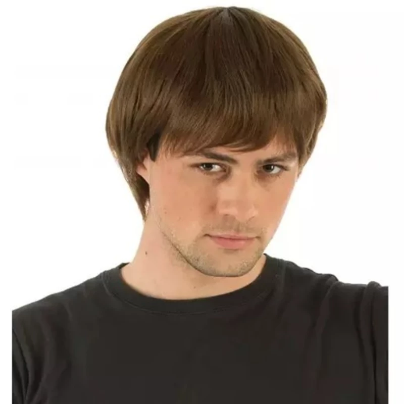 Cette perruque est conçue pour imiter la coiffure iconique des années 70, avec ses cheveux courts, lisses et sa coupe au bol naturelle.