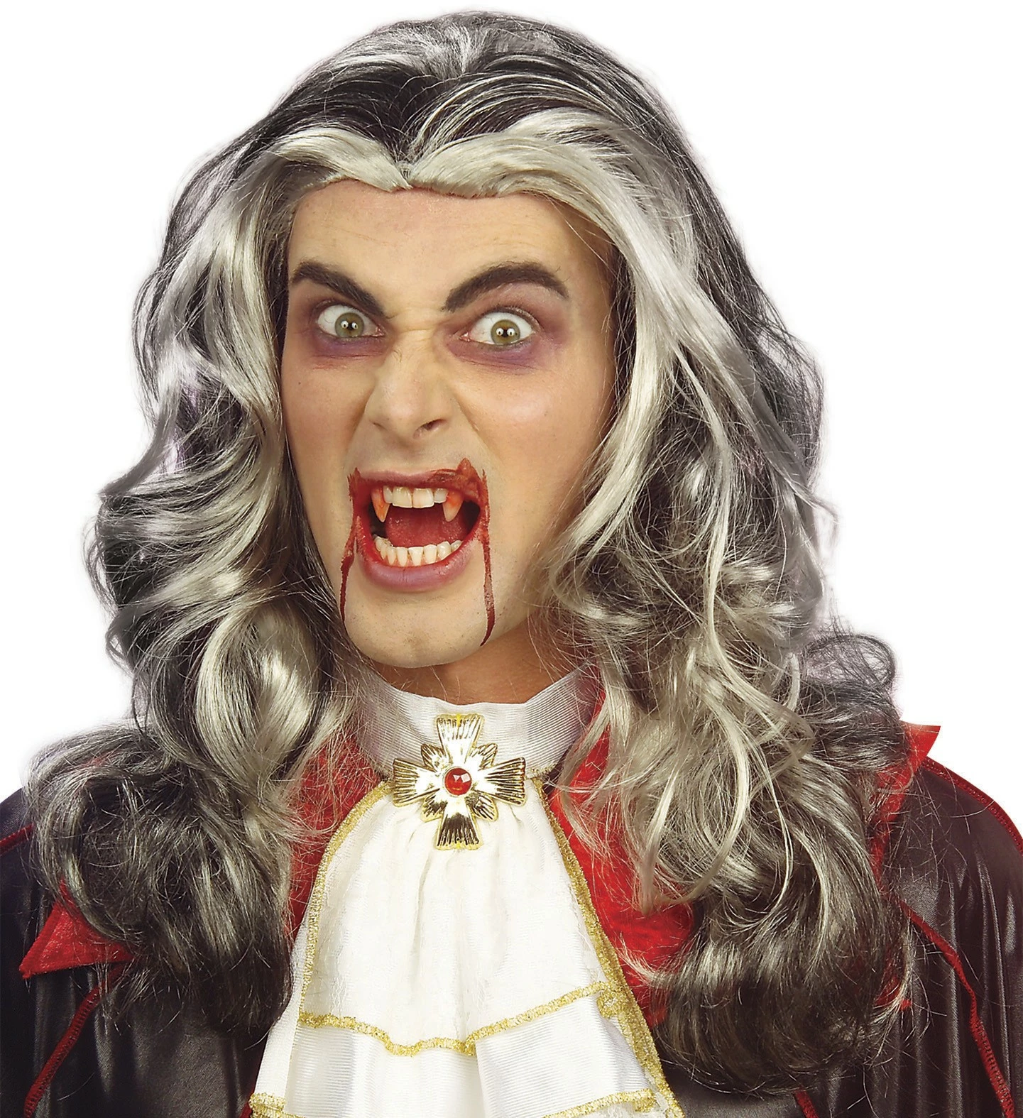 Fausse perruque longue de couleurs gris et noir pour vampire.