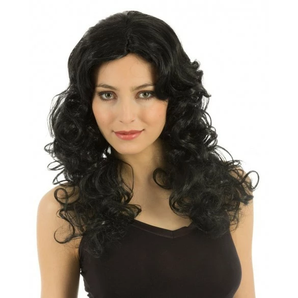 Perruque Sarah longue de couleur noir aux cheveux bouclés
