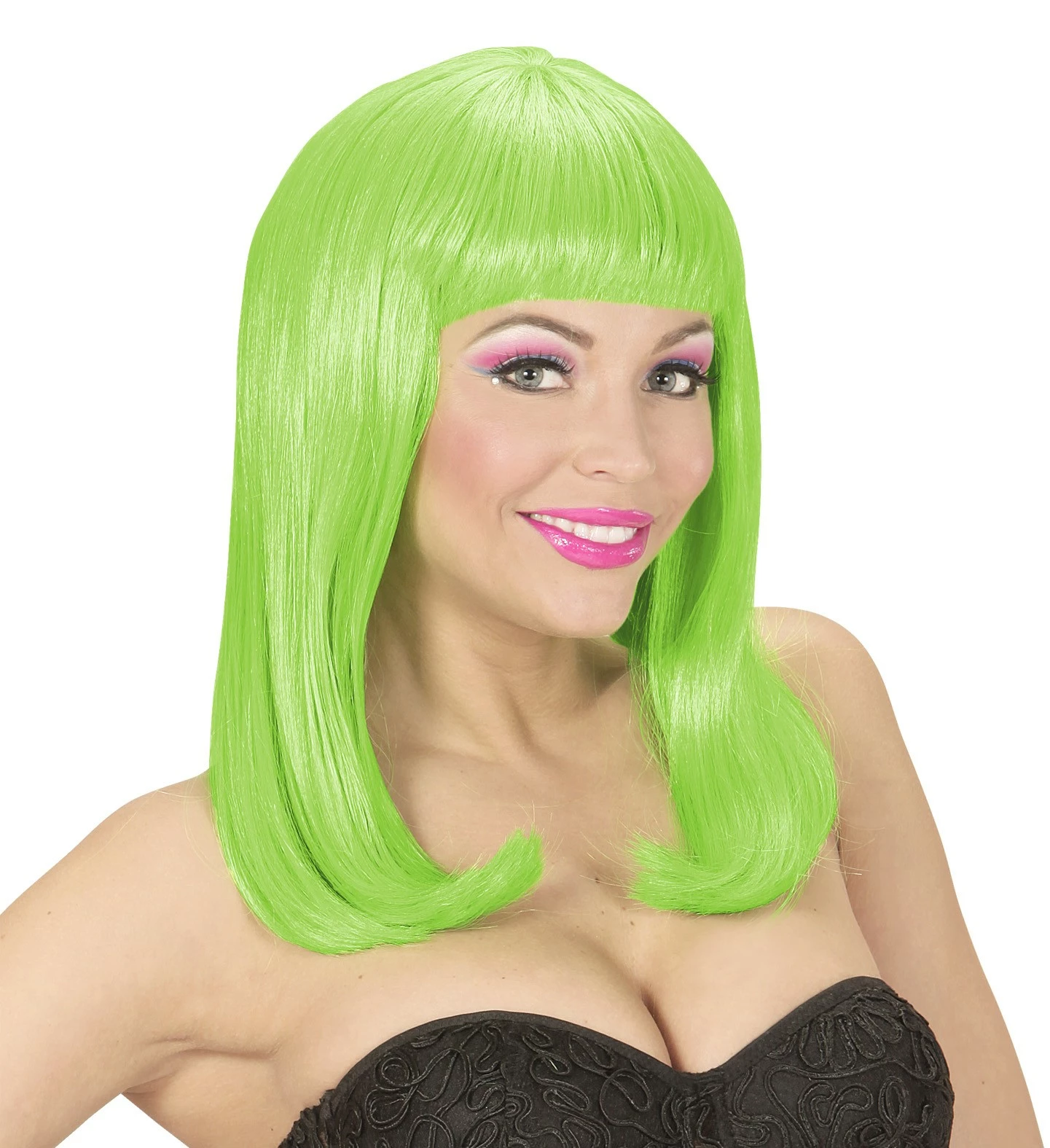 Perruque verte fluo au cheveux mi-long avec frange